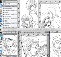 (ペン入れ終了→線画抽出→キャラ別に分割。)