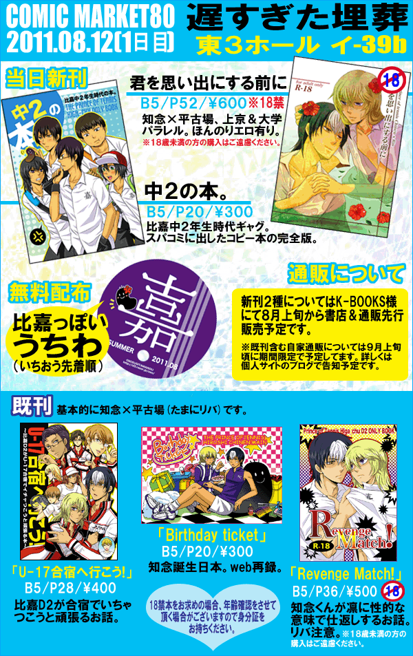 既刊については9月上旬にサイトにて期間限定の自家通販する予定です。